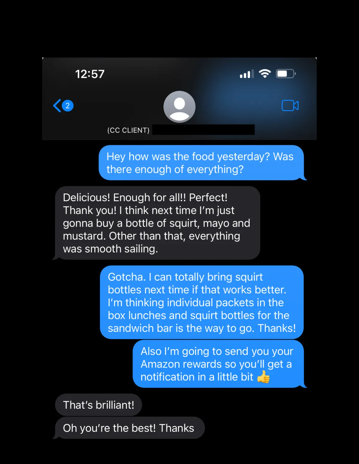 ✅ I've catered for over 400 companies